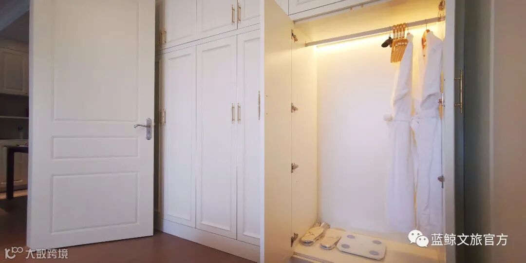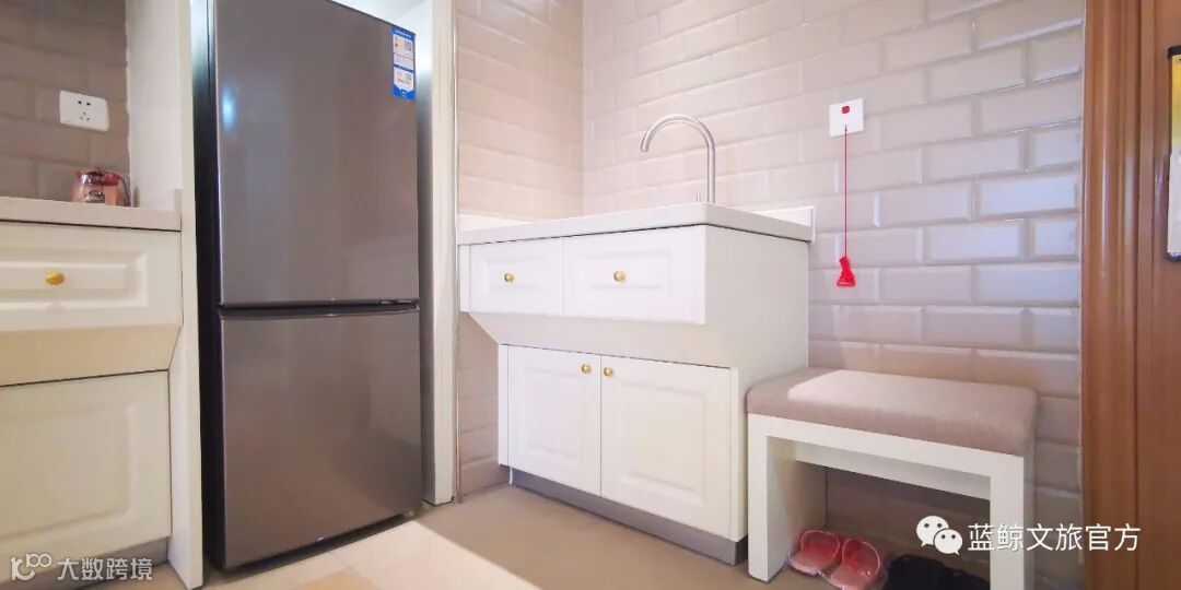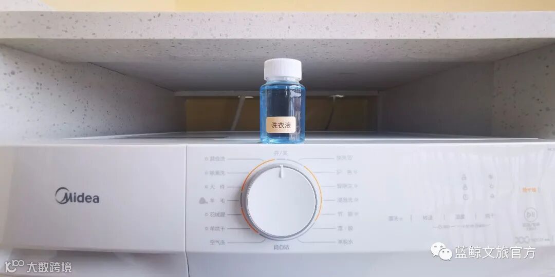北方的阳台,基本上都是包裹封闭起来的。但在这里阳台却是南北通透,并且在每个房间的阳台都配备了洗衣机和晾衣架,还特意准备了小瓶装的洗衣液,简直太方便了。