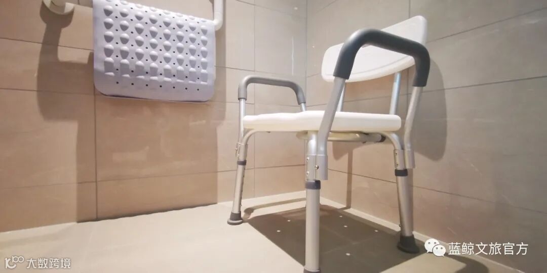 其实很多人家里都有全自动马桶,但这对于爸妈来说,意义重大。因为它可以保证爸妈不会坐到冰冷的座圈,并且通过水洗,可以清洁臀部和下身,避免侧身擦拭时重心不稳导致意外跌倒,并且在扶手旁边还配备了紧急呼叫按铃,如有意外,这里的管家也可以及时赶到。