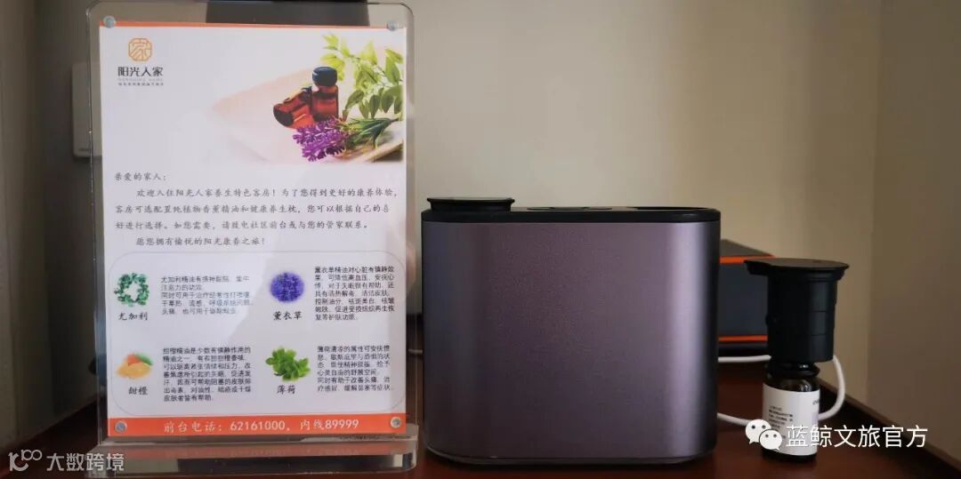 还有这个香氛机,为了让爸妈得到更好的康养体验,这里还配置了纯植物的香薰精油,用尤加利,薰衣草,甜橙和薄荷等多种植物的香味,缓解每天的疲劳,改善不良的睡眠。