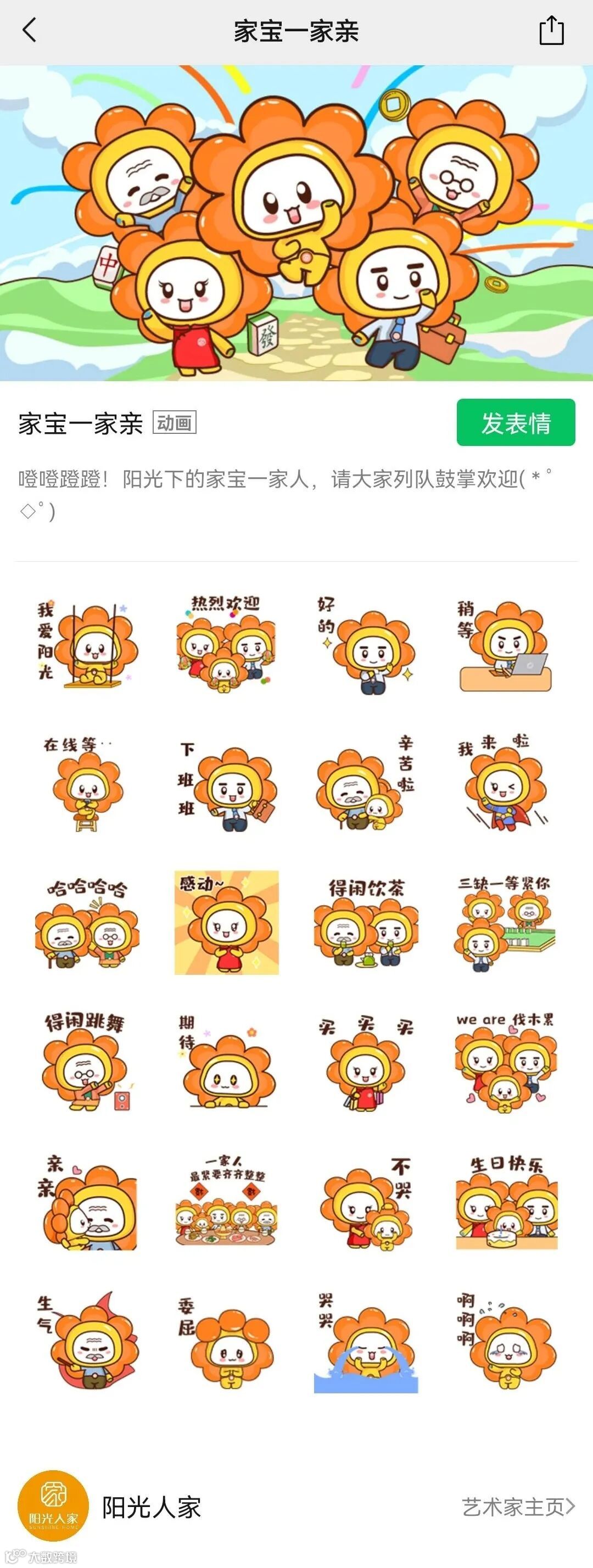 我叫“家宝”,是一朵特别的向日葵,在我胖嘟嘟的肚子上,有着“阳光人家”的“家”字LOGO,不瞒您说,我是“阳光人家”大家庭中的一个可爱宝宝。(点击本年度不容错过的阳光人家超Q专属表情包【家宝日常】即可查看)我的左手心是绿色的,右手心是蓝色的,是科技与自然完美结合呢。