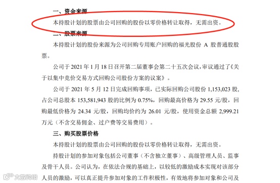 而此次持股计划是以零价格转让取得,无需出资,一定意义上是零成本获得。