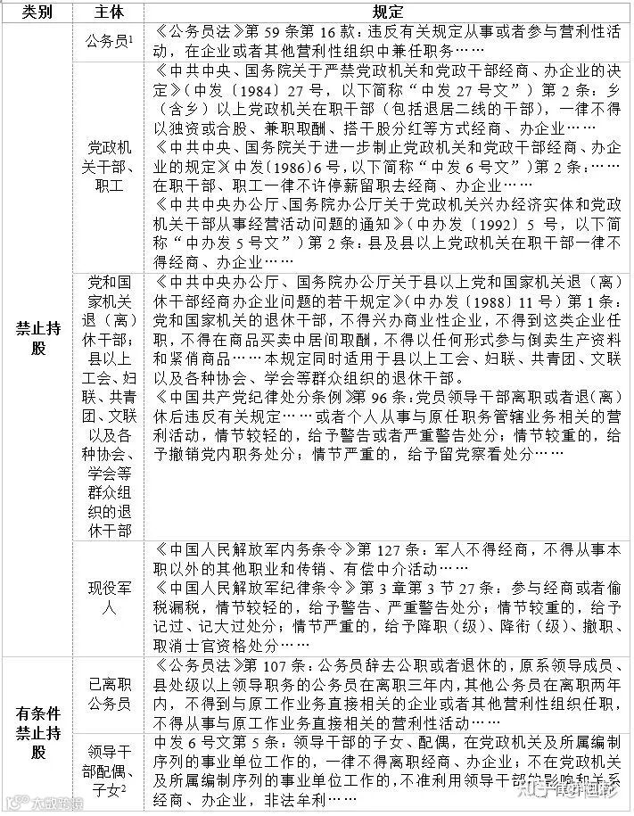 (1)《中共中央办公厅国务院办公厅关于印发〈关于党政机关工作人员个人证券投资行为若干规定〉的通知》第3条:“党政机关工作人员个人可以买卖股票和证券投资基金……”