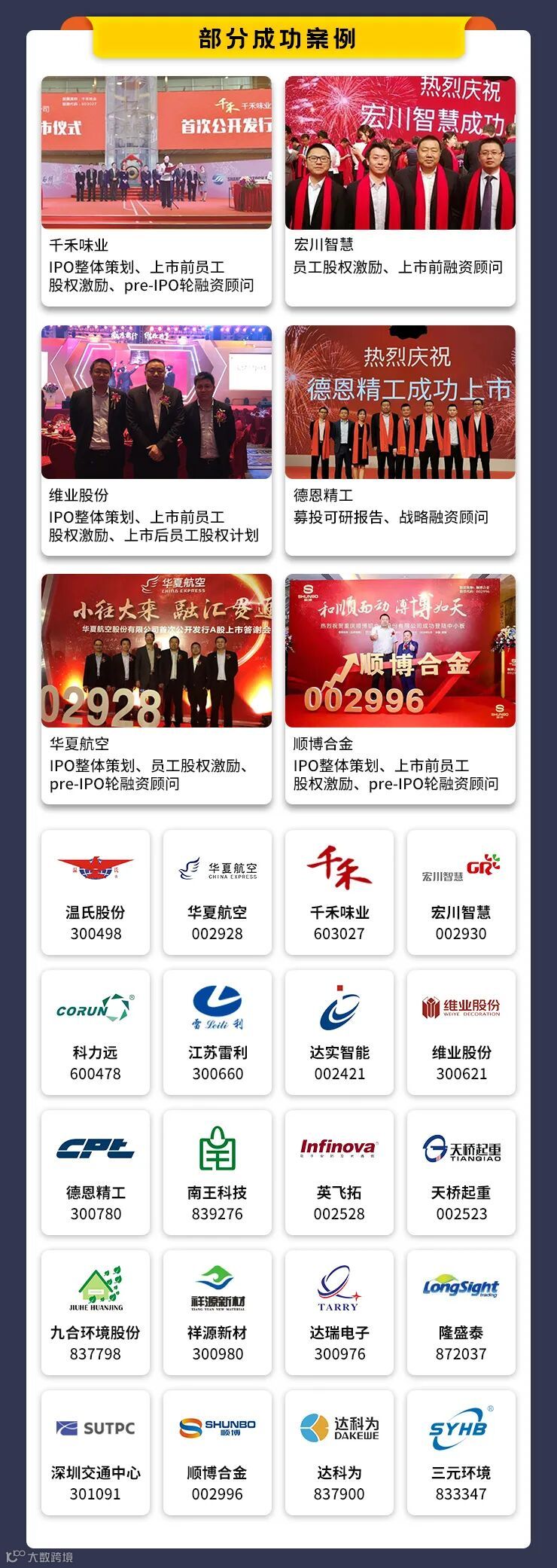 在众多企业的服务过程中,华扬资本客户受到资本市场高度认可,持股员工实现了良好的退出。战略、人力、法律、财税、金融等复合型的华扬专业团队、以解决问题为导向的务实风格,也赢得了客户的一致认可!