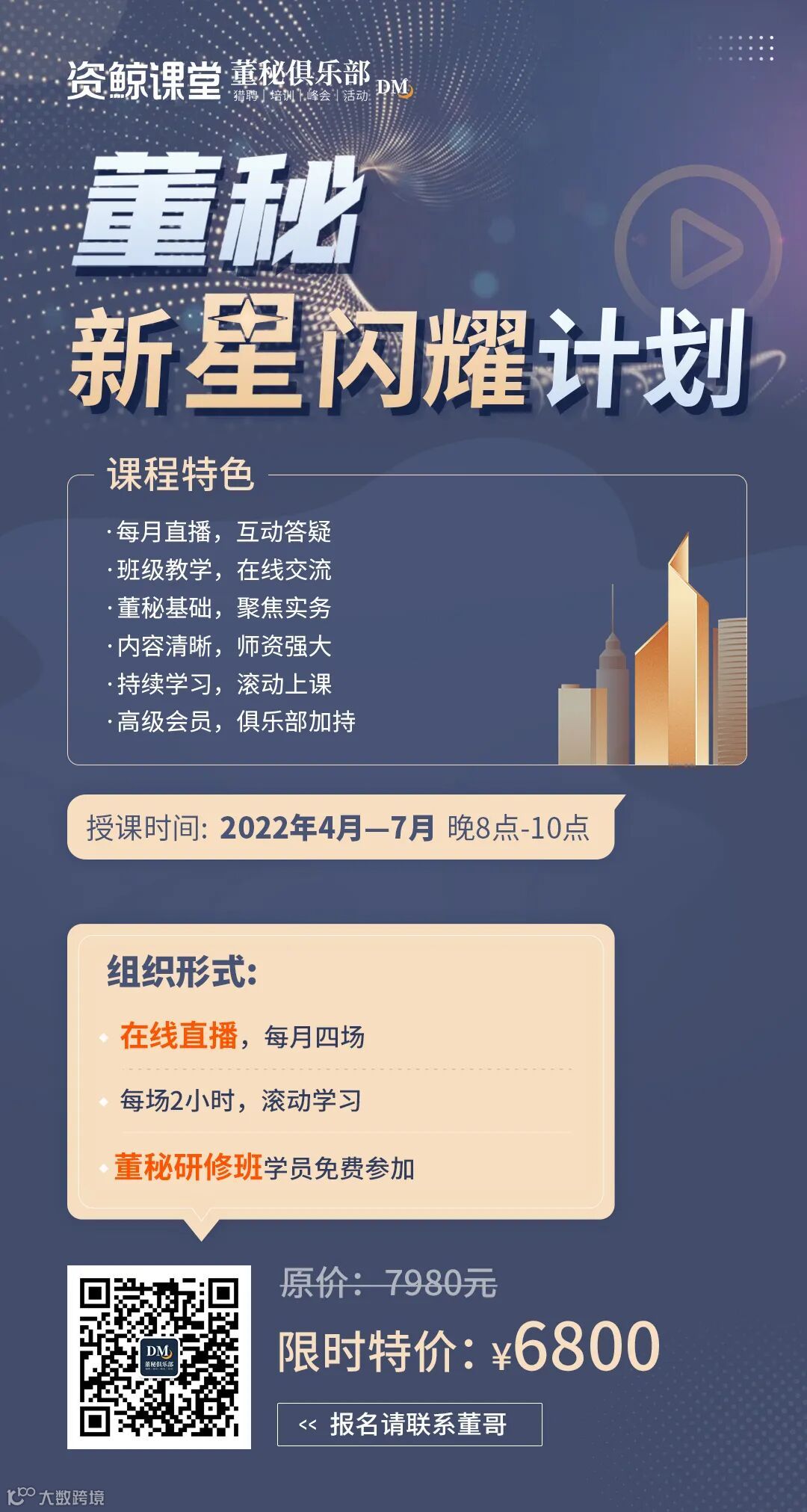 《董秘新星闪耀计划》第四次课程直播时间:2022.04.28 晚8点-10点!
