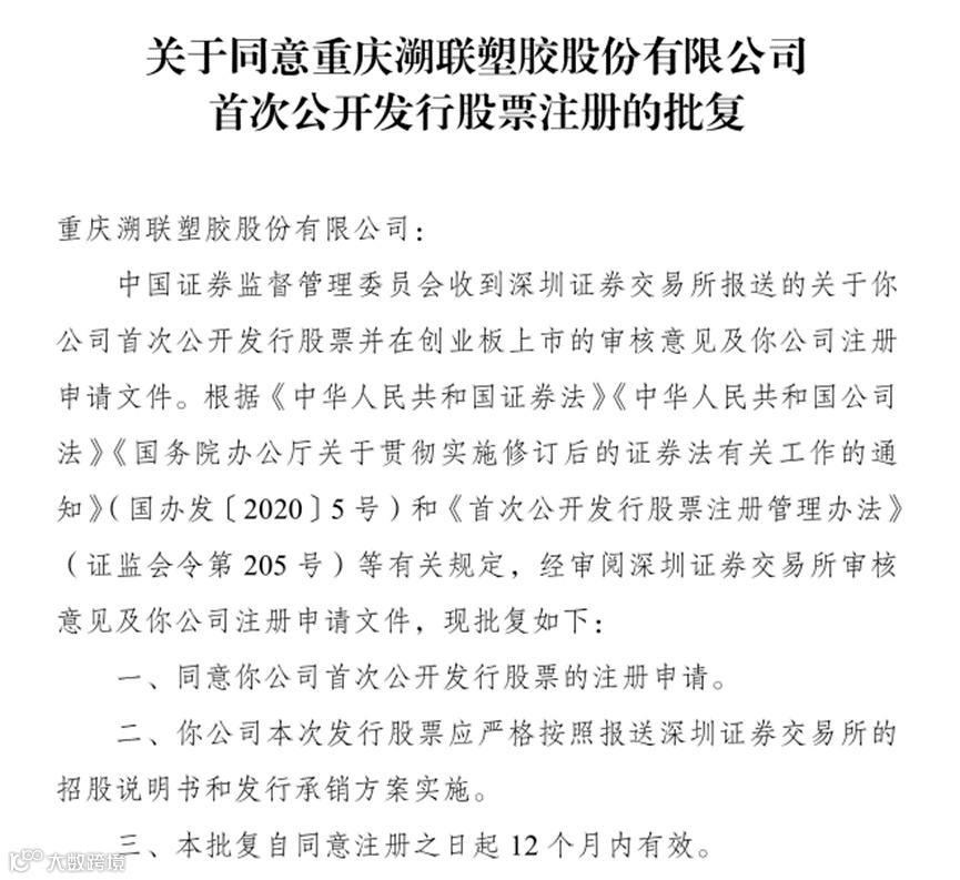 导读:Family企业之一:5月3日,重庆溯联塑胶股份有限公司注册生效重庆溯联塑胶股份有限公司是一家从事塑料尼龙管