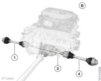 其一,等长传动轴设计。之所以当车辆大油门加速时会产生扭矩转向,主要源于横置发动机和变速箱带来的左右传动轴长度不同,从而导致了瞬间左右车轮的速度不同。为了尽可能缓解这一问题,宝马巧妙地使用了等长传动轴设计,保持了传动轴的末端即1和4轴的长度相同,从而最大限度地环节扭矩转向。