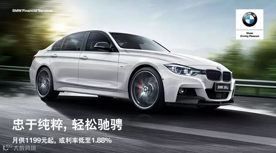 以2017款时尚型BMW 318i时尚型为例,官方建议零售价为288,000元,如果你选择了悠贷金融计划,只需支付5.8万元的首付款,分48期,每年进行一次52,992元的年度还款,月供可低至1,199元;如果你更倾向于悦贷金融计划,分12期,更可以享受1.88%的超低利率,想象一下,你可以一边享受低首付、低月供带来的轻松生活,一边享受BMW 3系给你的驾驶激情,有没有心动?