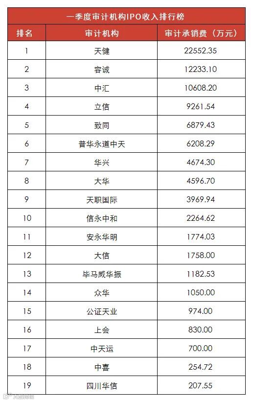 据研究院统计,2022年一季度A股新上市58家企业,首发募集资金1798.73亿元。IPO中介机构有32家保荐机构,共收入80.26亿元;19家会计师事务所,共收入9.20亿元;36家律师事务所,共收入4.66亿元。