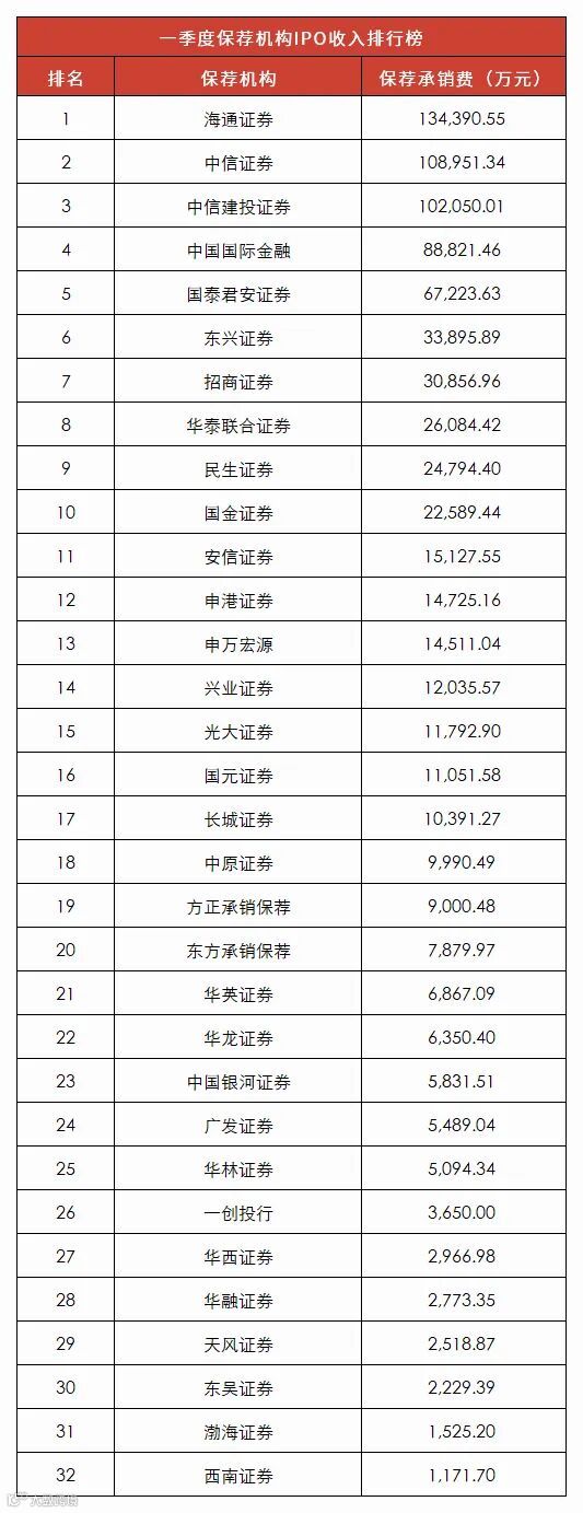 第一,海通证券,IPO保荐承销收入为13.44亿元;