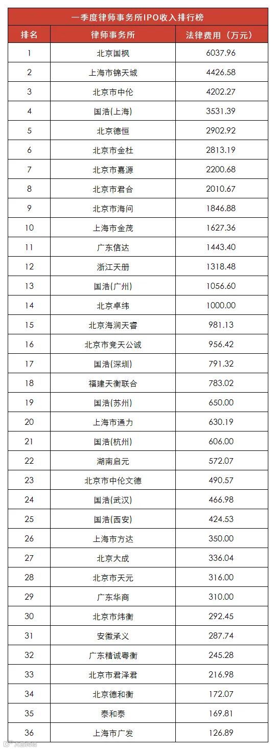 2022年一季度,排名前三的律师事务所IPO项目收入占比为31.48%。
