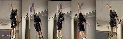 在标线区域内双脚离地起跳,触摸对应分数的高度标线。
