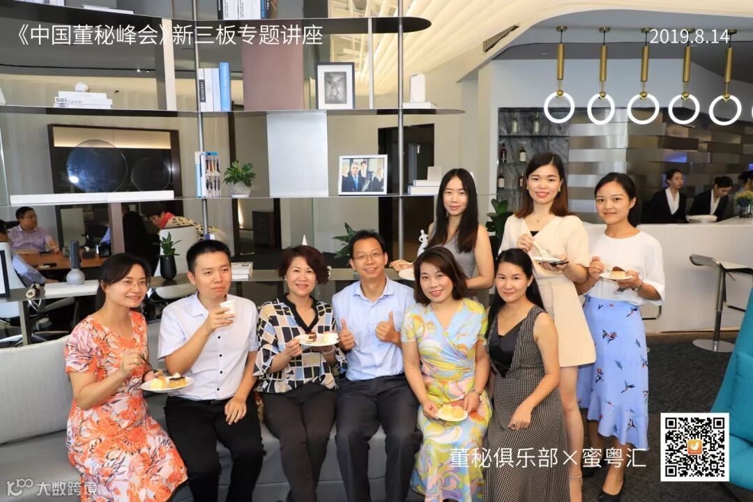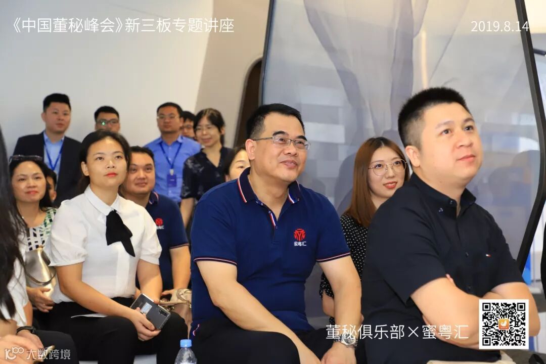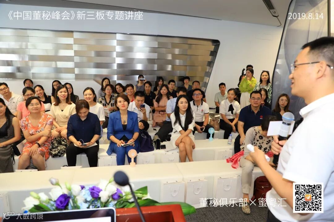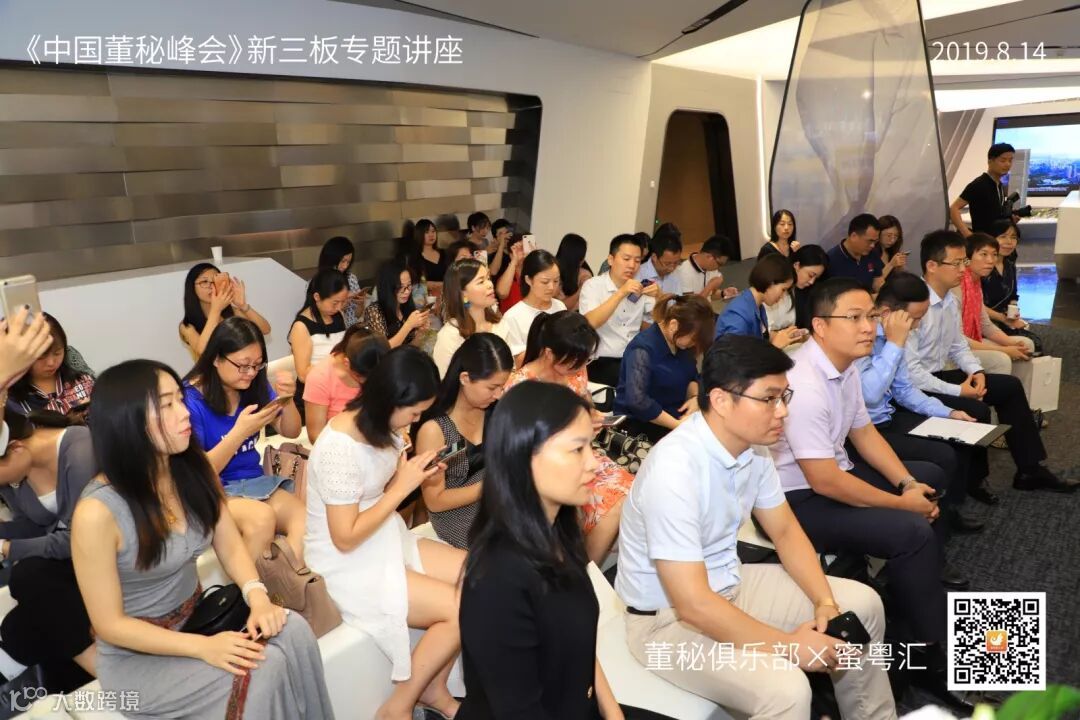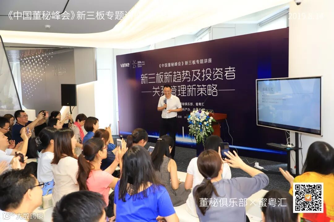 2019年8月14日,由董秘俱乐部联手蜜粤汇主办,深圳万科产办与华扬资本协办,中国董秘百人会大力支持的《中国董秘峰会》新三板专场活动,在深圳万科滨海云中心16楼隆重举行,共有40多位新三板企业董秘参加了本次学习交流。
