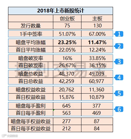 4、创业板的暗盘收益比首日收益高一些,主板的首日收益要比暗盘收益高很多;