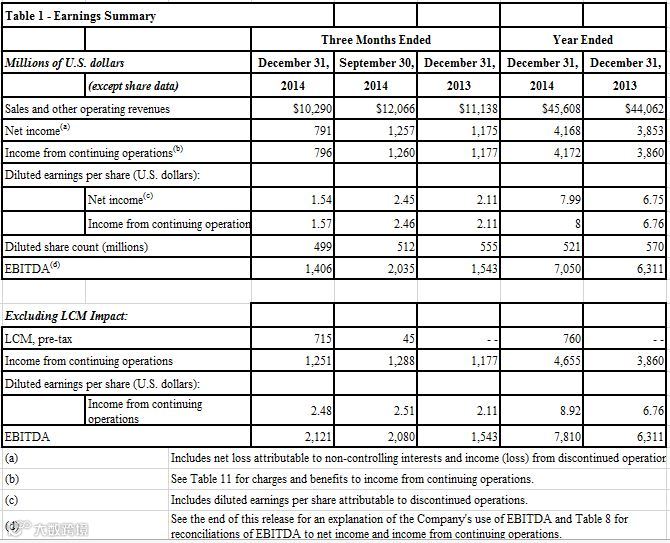 净利润:38.39亿美元,下降19.2%。(2013年:48.16亿美元)