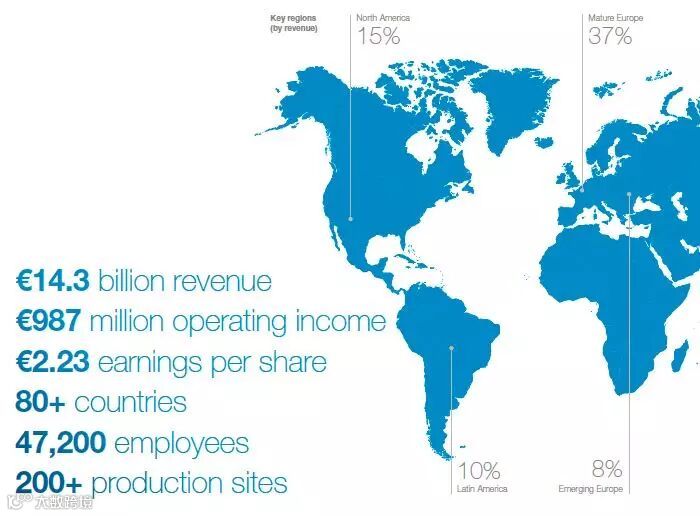 销售额:142.96亿欧元,下降2%。(2013年:145.9亿欧元)