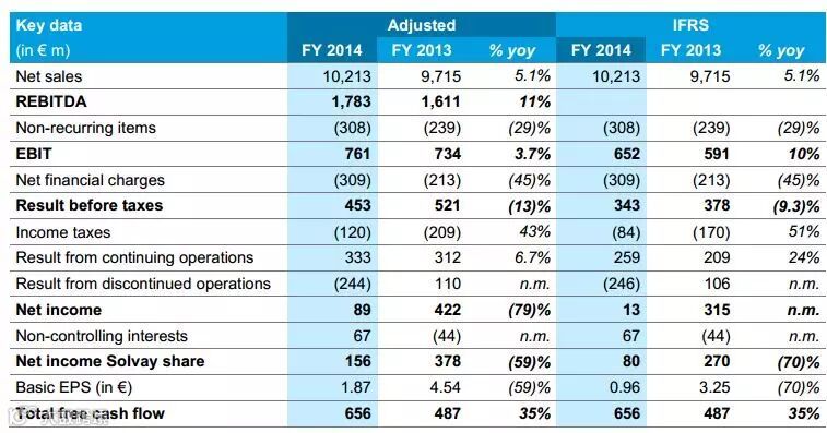 每股收益:1.87欧元,下降59%。(2013年:4.54欧元)
