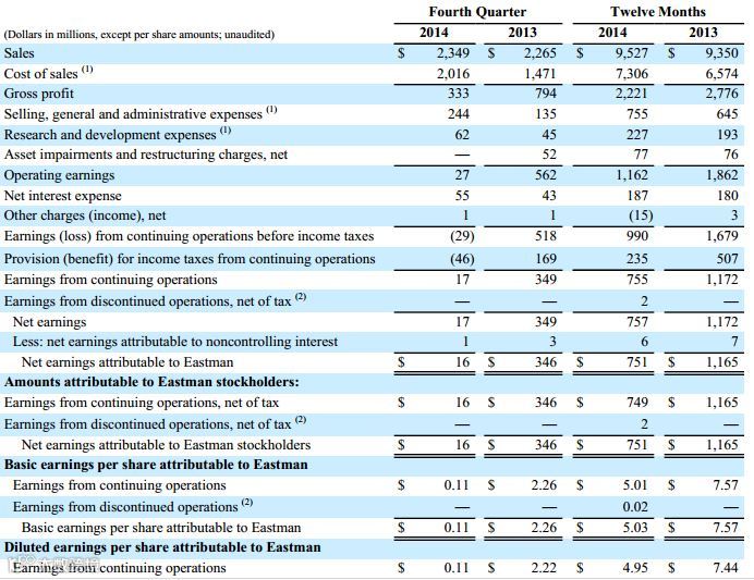 每股收益:5.03美元,下降33.6%。(2013年7.57美元)