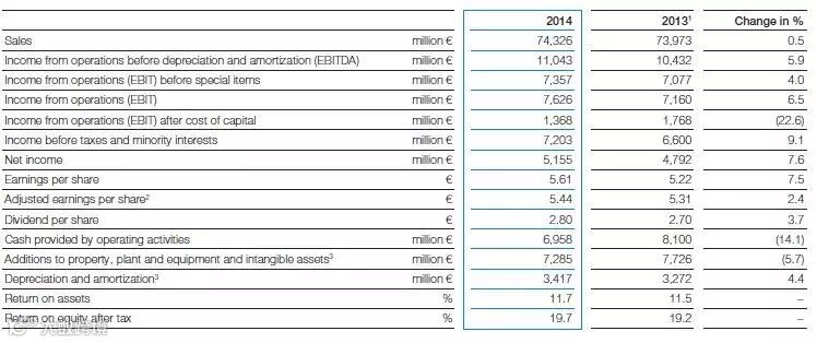净利润:34.26亿欧元,增长7.4%。(2013年:31.89亿欧元)