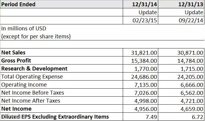 净利润:41.68亿美元,增长8.2%。(2013年38.53亿美元)