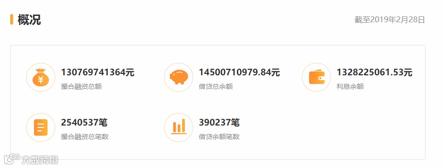 截至2019年2月28日,团贷网历史累计成交量达1307.70亿,借贷余额超145亿,待偿金额118.9亿。出借总人数978218人,当前出借人数达22.2万人,借款人数达37.2万人。平台因借款方违约等原因第三方(非借款人、非网贷机构)累计代偿总金额为30.21亿。
