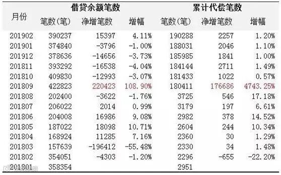 再来看累计代偿笔数从8月份的3725笔增长到18.04万笔,净增17.67万笔,增幅高达4743.25%,因为当底层资产逾期的时候,就需要平台或者第三方来兜底代偿还给投资人,因此代偿猛增就意味着公司逾期率猛增,兜底风险加大。