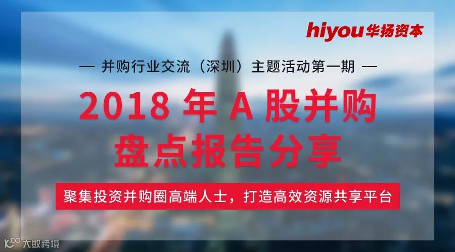 2018年A股并购虽然面临着“三高”爆雷、大股东股票质押、股指下跌等多重不利因素,但也迎来了证监会密集出台新政促进并购市场回暖的机遇。本期主题活动由华扬资本合伙人对2018年A股上市公司的并购交易进行年度盘点,分享并购行业现状、趋势及并购案例。
