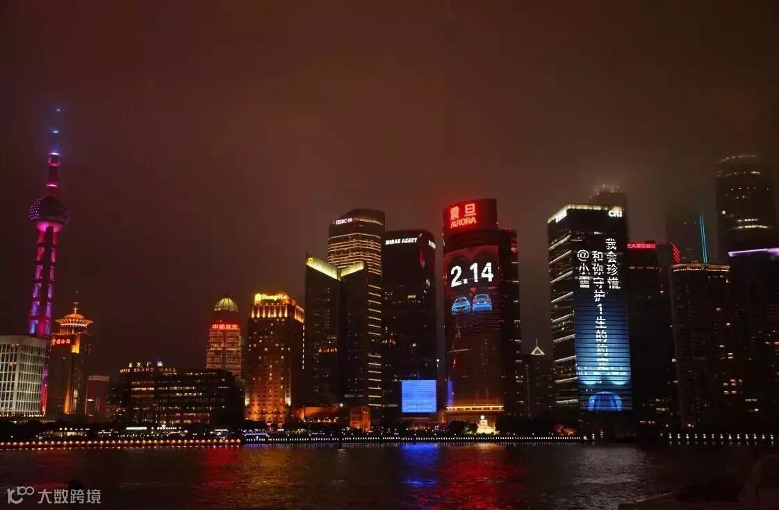 黄浦江畔灯火通明,想必2月14日的上海外滩一定又会浓情蜜意,看看对岸的震旦大厦和花旗集团大厦并肩而立,有没有想过你想对TA说的话可以在这接近两百米的巨屏里呈现?