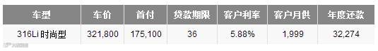 新一年,BMW 3系为您精打细算,以BMW 3系2015超悦版316Li 时尚型贷款36个月举例,首付适当提高,每月1999元轻松月供,不仅减轻日常还款压力,还可享有年度灵活还款。