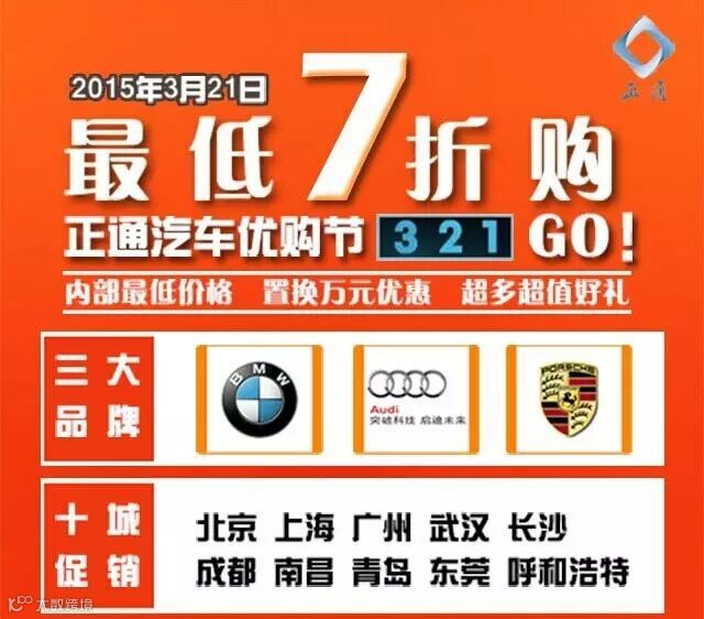 1、约惠价——活动期间购车客户即可享受正通集团宝马品牌最低7折等优惠政策(详细政策可询店内)。