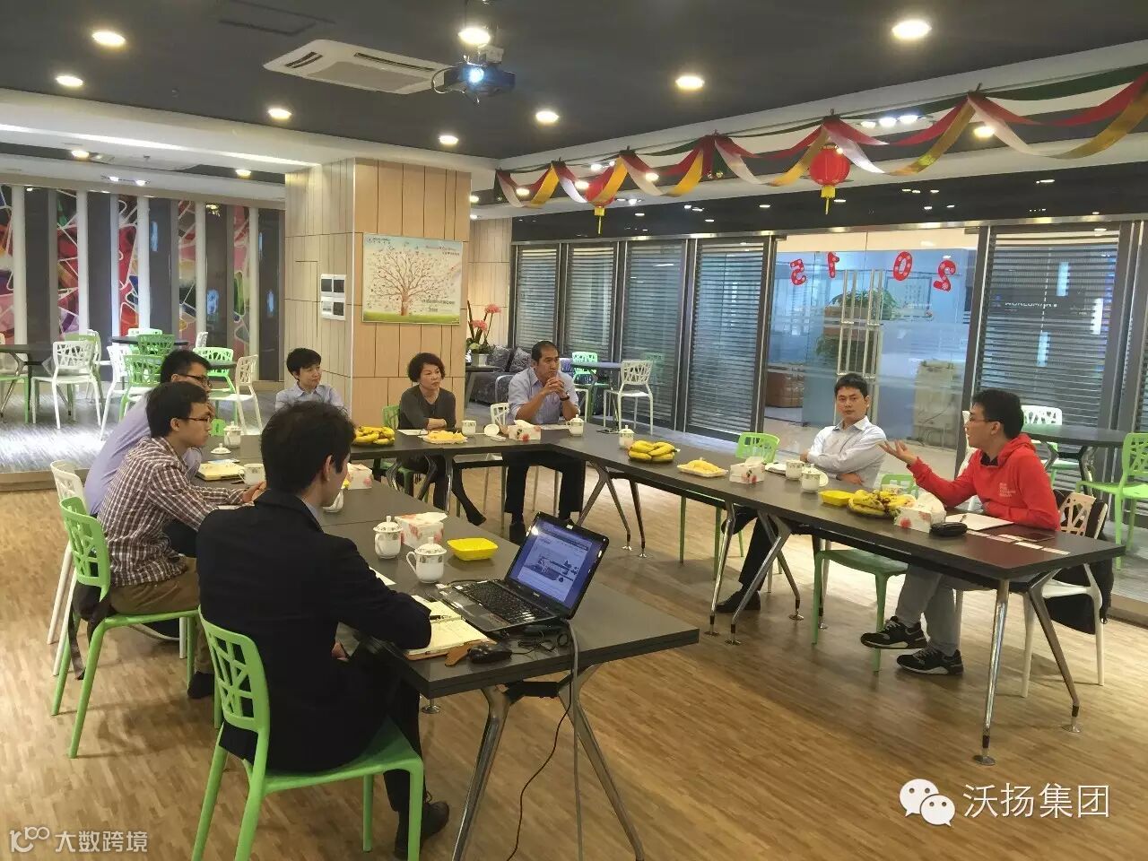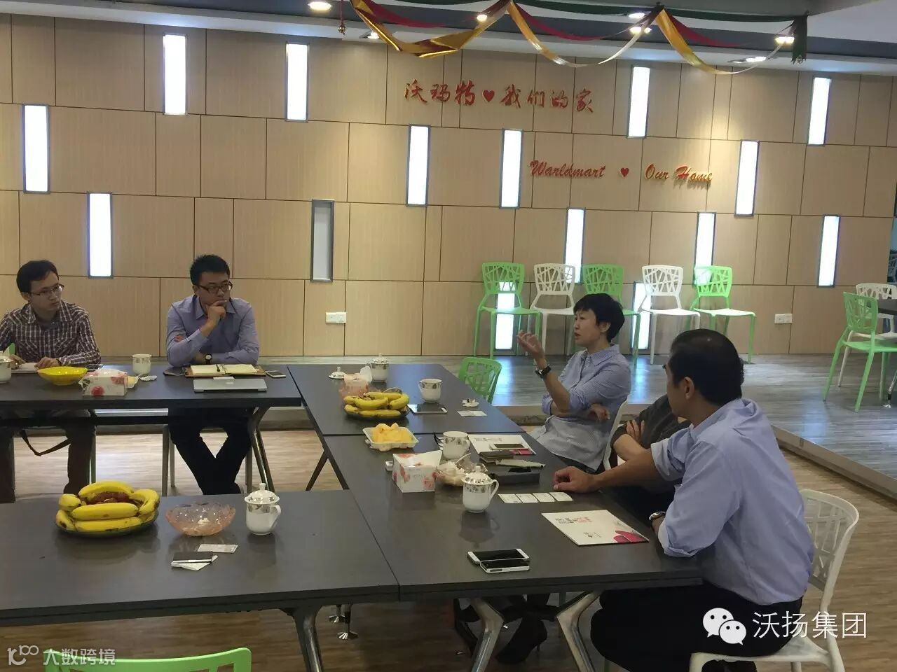 刚开始沃扬集团董事长和COO带领欧浦一行参观了公司和展厅,接下来跨境电商组向欧浦智网介绍了沃玛特跨境电商项目发展情况及未来规划并向欧浦智网吸取经验。
