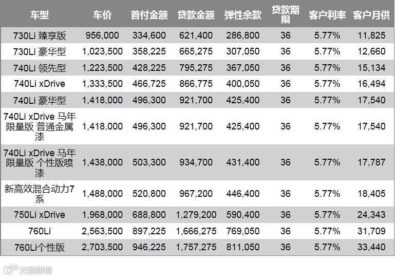 BMW 7系双享零售金融方案