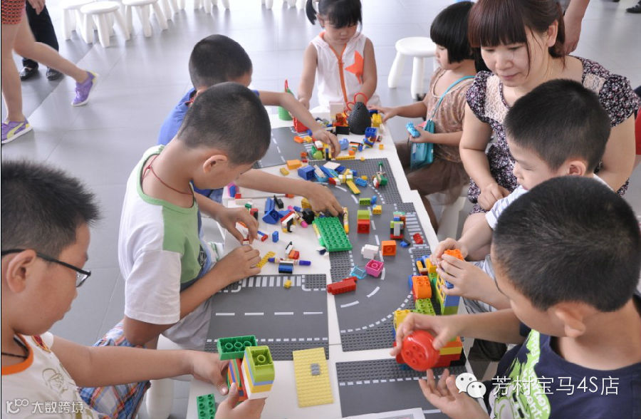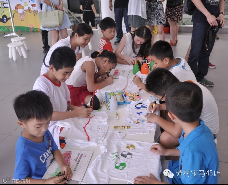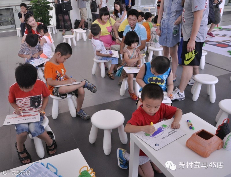 然后是美术课时间,车辆拼图绘制游戏,工作人员将印有BMW车辆的拼图发给小朋友,小朋友可以选择自己喜欢的颜色给车身上色,画出属于自己心目中的DREAM CAR,绘制完成后这副拼图可以带回家,跟父母一起玩。在填上颜色的同时,由于彩色笔的数量有限,大家需要通过相互协作,相互帮忙才能完成一幅色彩丰富的图画。老师很鼓励小朋友主动跟别人交换手中的彩色笔,在这样的合作氛围下,小朋友学会了团队协作的精神,老师趁机跟孩子们讲,当别人帮助了你,一定要立刻说一声谢谢。小朋友们围成了一个圈,几个小伙伴互相交换自己的彩色笔,都画出了自己心目中的汽车。看见自己的孩子进步如此快,家长们的脸上露出了自豪的笑容。