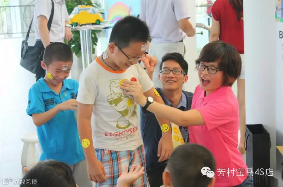 在热身游戏里面,一开始小朋友们还是比较腼腆,几轮游戏之后,大家就开始熟悉起来了,在“情绪面面贴”的环节里,大家玩的很开心。前面的尴尬,很快就被笑声打破了。大家在互动中进一步互相了解对方的兴趣爱好,小朋友们很快就打成一片了,欢乐的笑声很快就充满了整个4S店。