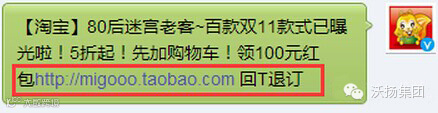 “【淘宝】80后迷宫老客~百款双11款式已曝光啦!5折起!先加购物车!领100元红包http://migooo.taobao.com 回T退订”