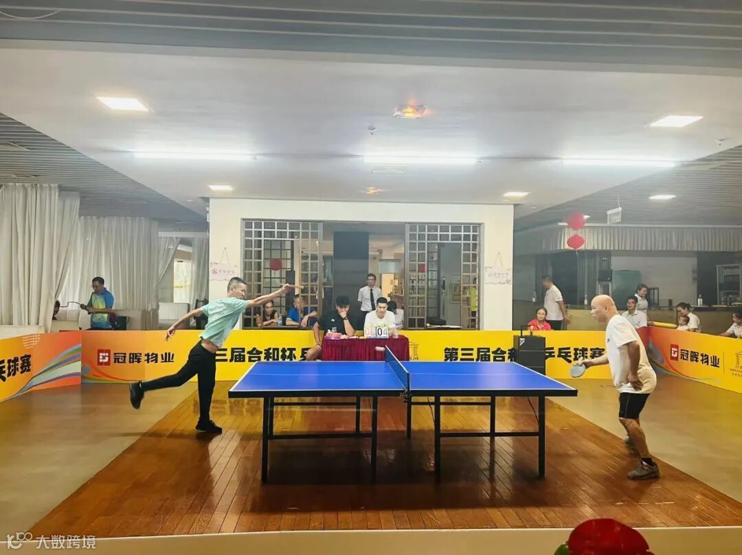 2024年8月24日由广州市冠晖物业管理有限公司及广州市合和(花都)置业发展有限公司联合举办第三届“合和杯”乒乓球比赛在合和新城小区拉开帷幕。