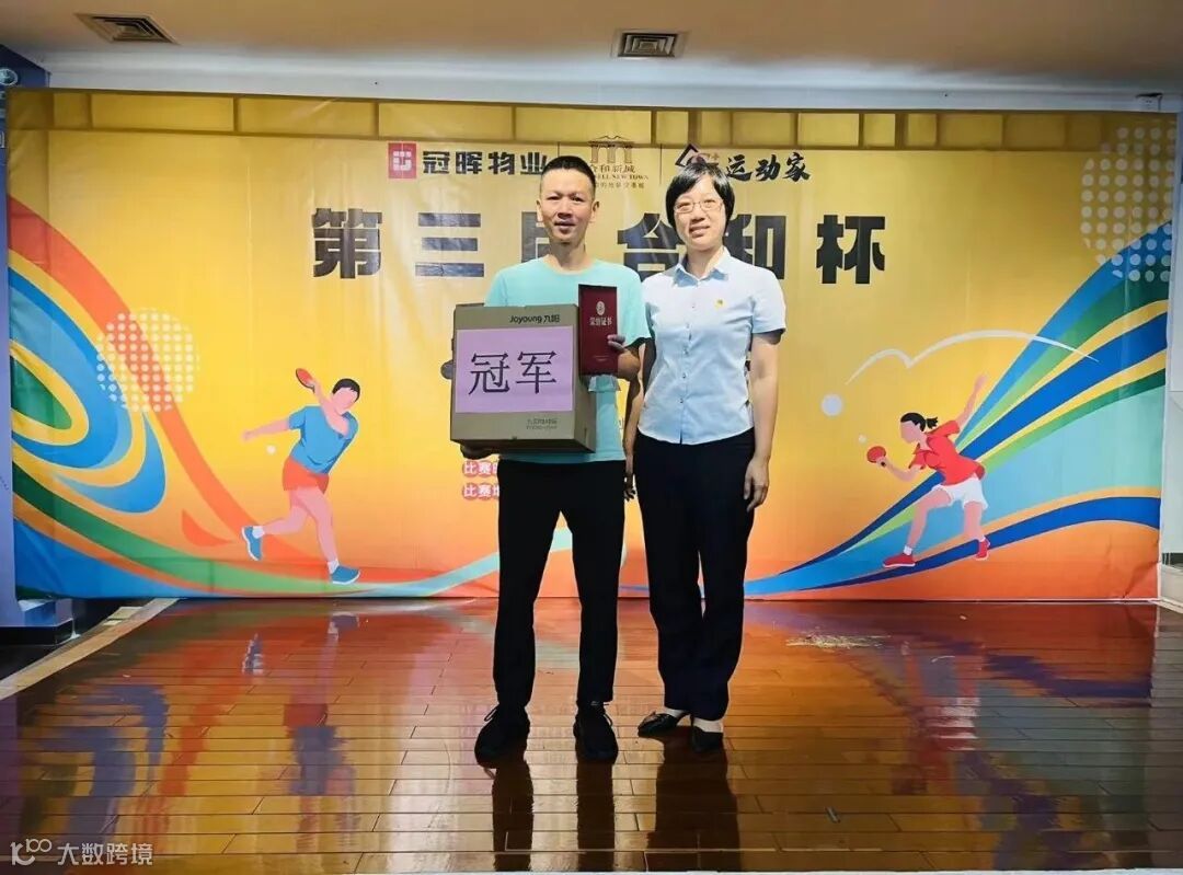 冠晖物业党支部书记龚桂珍、冠晖物业客户部经理曹健灿、冠晖物业客户部主任刘康为获奖选手颁发奖杯及奖品等。