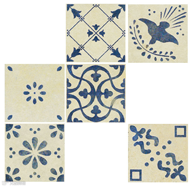 由于每一片瓷砖都会有色彩上的细微差异,给表面有晕染效果的瓷砖带来更多的色彩变化,这种效果的瓷砖具有很强的装饰性。最具艺术感的此类瓷砖有局部晕染效果的,突出花朵图案的,以及手绘涂鸦效果的。