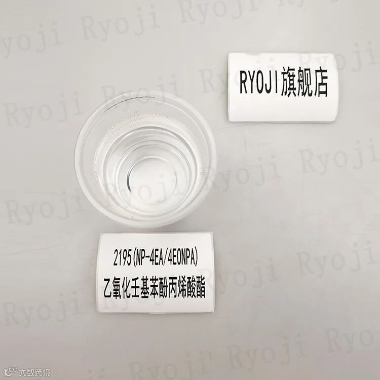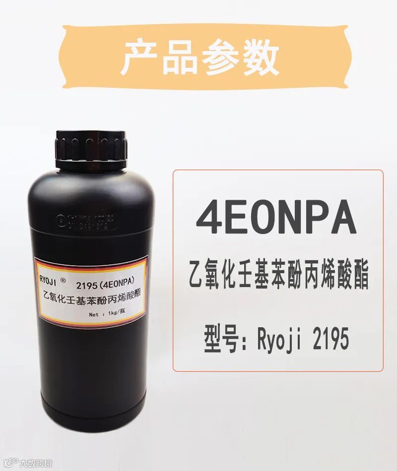 Ryoji良制2195 (4EONPA),全名乙氧化壬基苯酚丙烯酸酯,是一种单官能丙烯酸酯UV单体,被广泛用于能量固化印刷油墨、上光油、涂料及胶粘剂中。