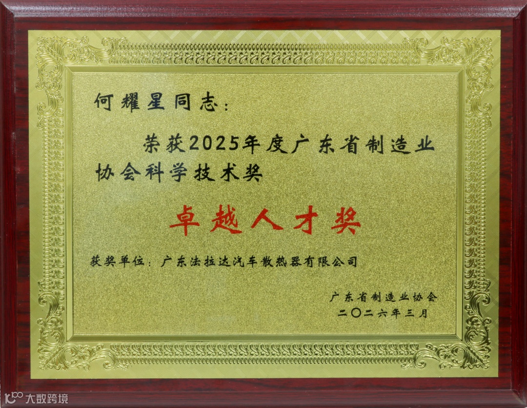 法拉达集团总经理何耀星先生受邀参与本次活动,并荣获广东省制造业协会授予的“卓越人才奖”。这一奖项,是协会对法拉达集团在科技发展领域持续深耕的高度肯定,也是对总经理何耀星先生在推动企业创新、引领产业升级、服务地方经济发展中所作贡献的充分认可。
