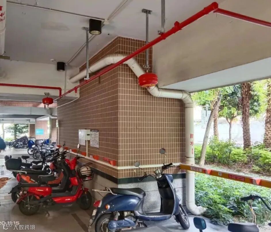近日,有细心的家人们应该留意到,园区里面用于停放电动自行车的架空层里新添了一排排“整齐列队”的红色“管道”。这些可不是普通的水管,而是新加装的一款火警自动消防喷淋设备。