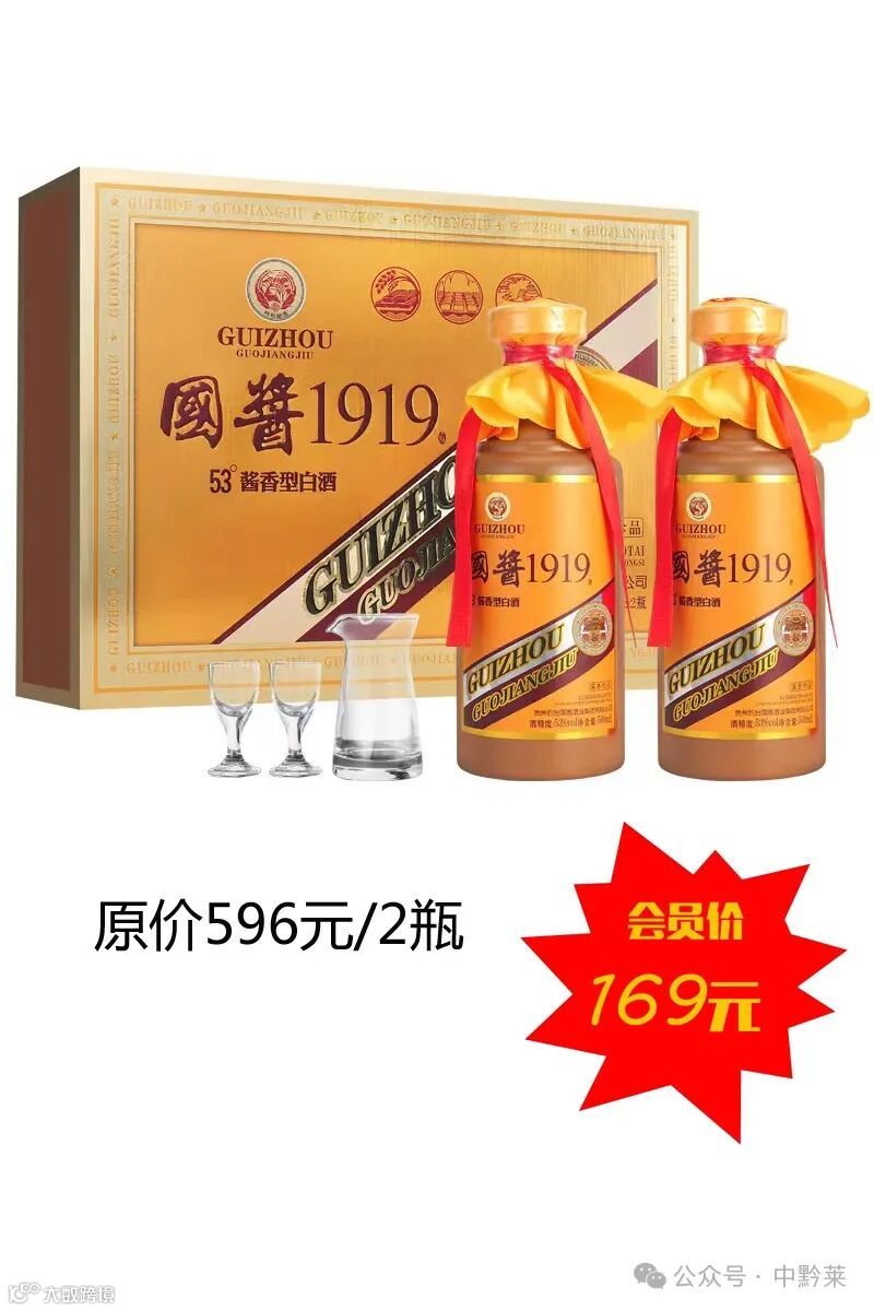 国酱1919酱香53度白酒,原价596元,会员价低至169元!