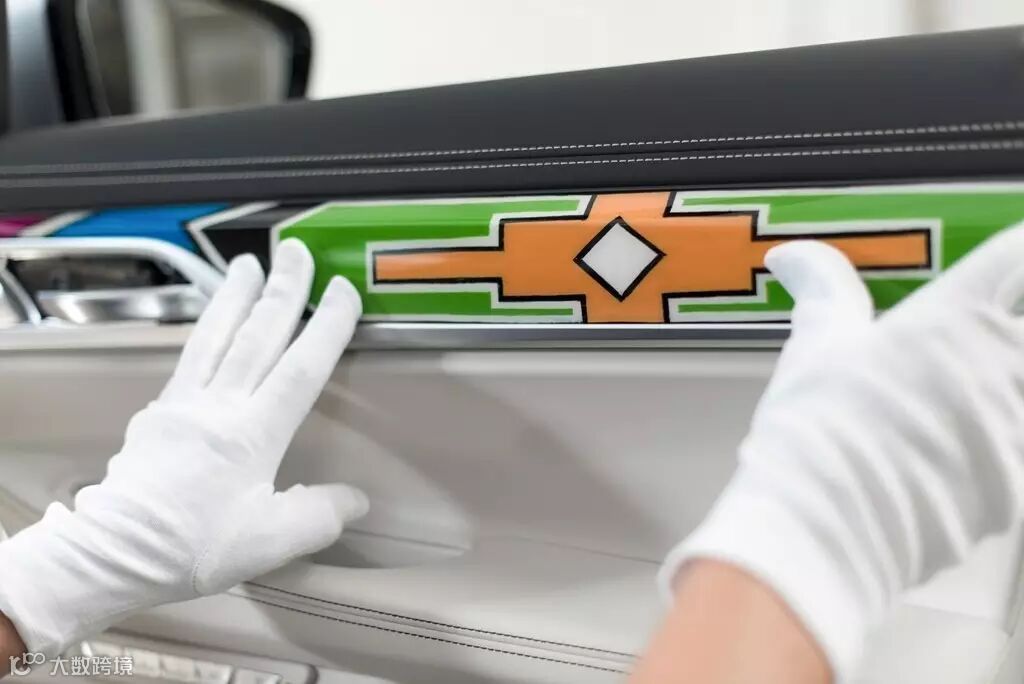 埃丝特•马那瓜将主要的创作落脚在了木饰面板上。在绘以民族风格的图案和鲜艳明快的色彩之后,BMW 7系的内饰变得更加立体和生动,成为一件绚丽多彩的艺术品。