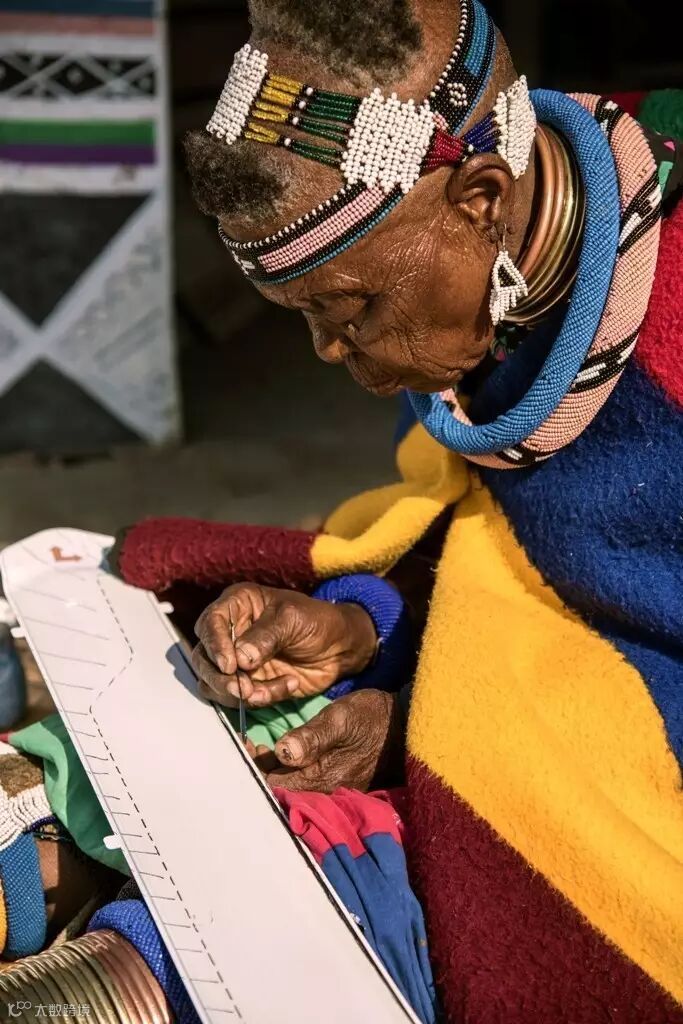 南非恩德贝莱族的女性向来善于以精巧的图案和几何元素来表达情感。埃丝特•马那瓜开创性地将这些装饰和图案与恩德贝莱族传统的绘画分开,并利用图片、容器和地毯等其他载体,将艺术作品融入人们的日常生活中。