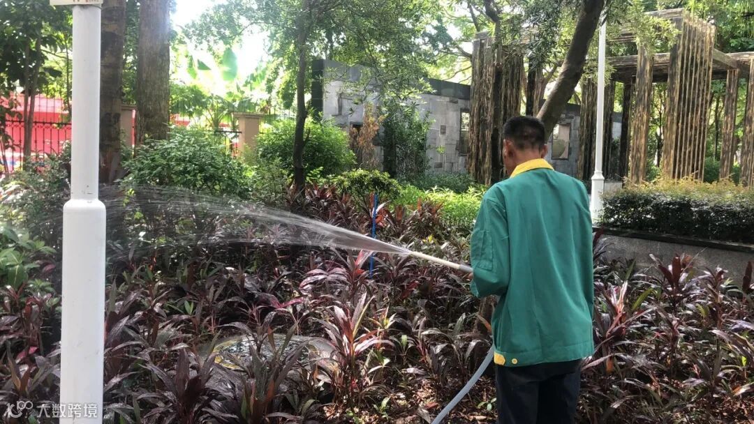 绿化环境是一个园区的形象名片。生活在绿树环绕、繁花似锦的环境中,给人以舒心、闲适之感。为确保园区绿化苗木的外形美观,绿化工们定期对绿化区域松土、施肥、浇水、修剪、除草、消杀病虫害等工作,随时检查养护情况,精心管护为业主营造舒适的居住环境。