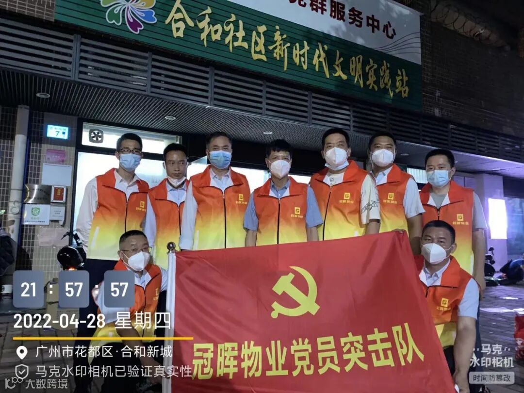 冠晖物业党员突击队昼夜响应出击,为全力配合社区排查工作做好充足保障。