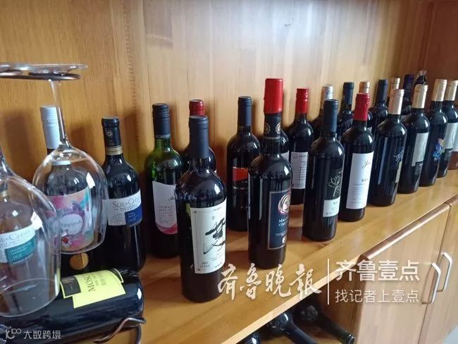 在百淇葡萄酿酒有限公司内的一处酒柜上,摆放着各式进口红酒供客户挑选,工作人员称,公司可原样定制。