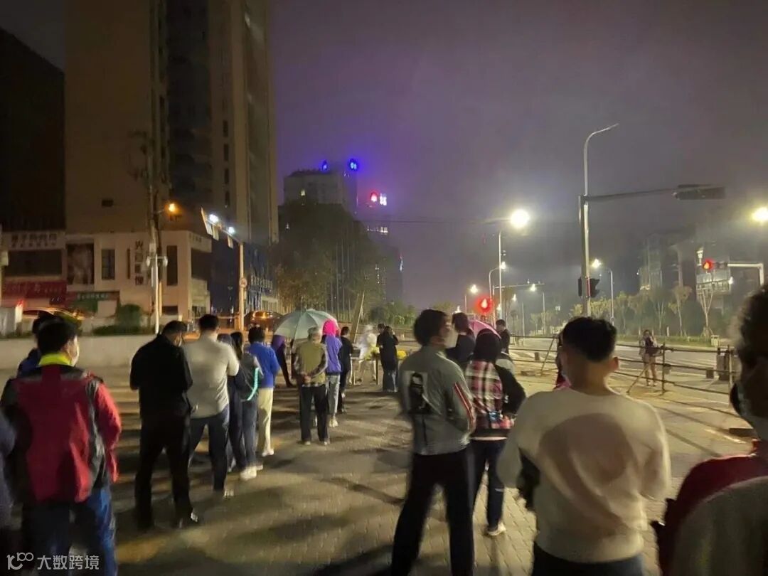△11日晚,青岛不少社区通知小区居民进行免费核酸检测,部分市民夜间排队等待做检测