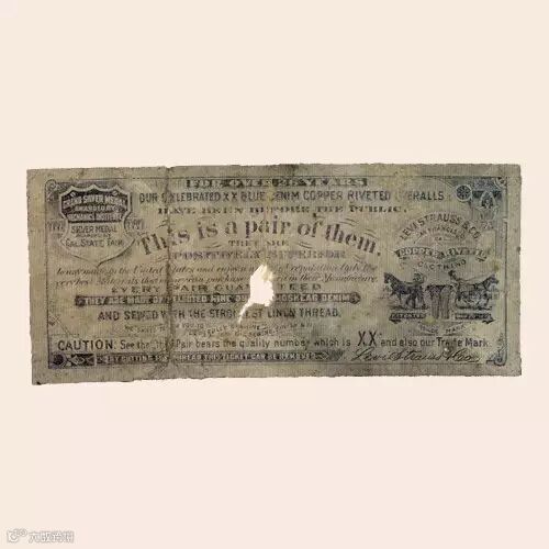 1876年,获得申请专利的牛仔裤在旧金山的工厂开始正式投入生产,最初的设计被简单命名为“XX”,leather patch也被更换为著名的双马标识;1890年,Levi Strauss&CO公司首次将牛仔裤编码, 501?就是Levi's首条牛仔裤型号