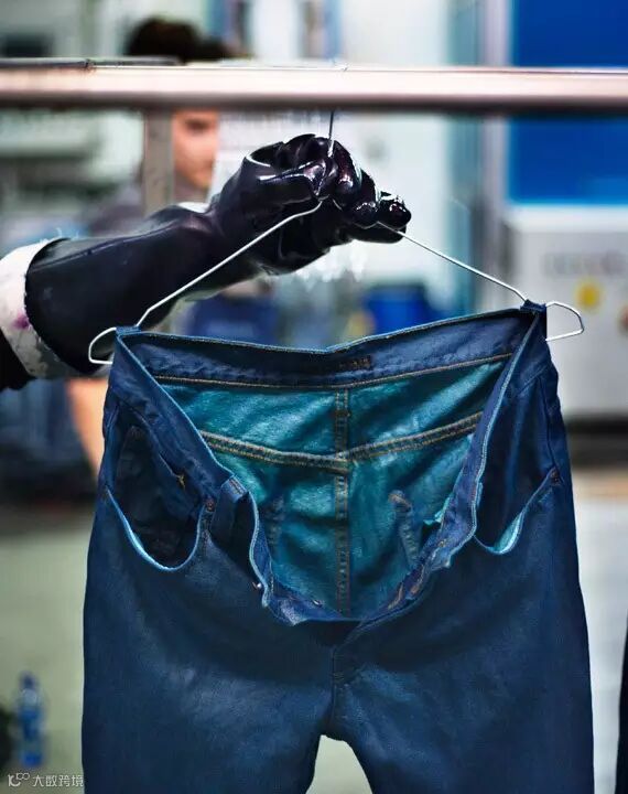 我们所看到的牛仔裤布面蓝色布底原色,是因为从棉花到纺纱再经过染纱,在织丹宁布时,染过色的经纱与原色的纬纱用右斜纹组织交织所形成的