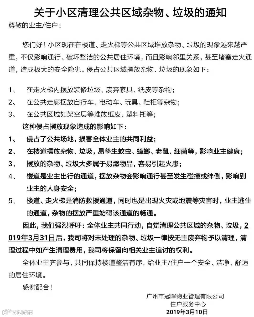 导读:关于小区清理公共区域杂物、垃圾的通知